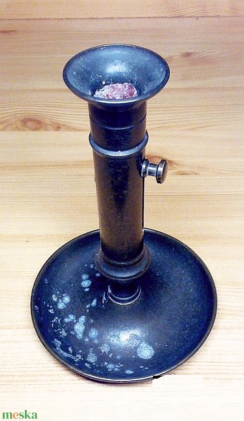 Biedermeier strófos gyertyatartó bronzból, patinás állapotban
