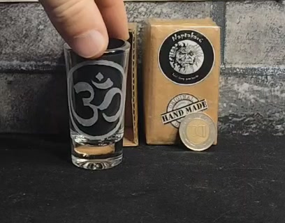 Kézzel gravírozott Ohm mintás röviditalospohár