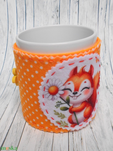 - Anyaga: mintás barkácsfilc, hímzőfonal, gomb, kalapgumi, pöttyös barkácsfilc, virág alakú fa gomb