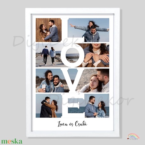 Egyedileg szerkesztett fotómontázs szerelmeseknek. Az általad küldött fényképeket (8 db-ot) a LOVE szó betűi mellé szerkesztjük. Tökéletes, személyes ajándék Valentin-napra, évfordulóra, esküvőre, karácsonyra, születésnapra.