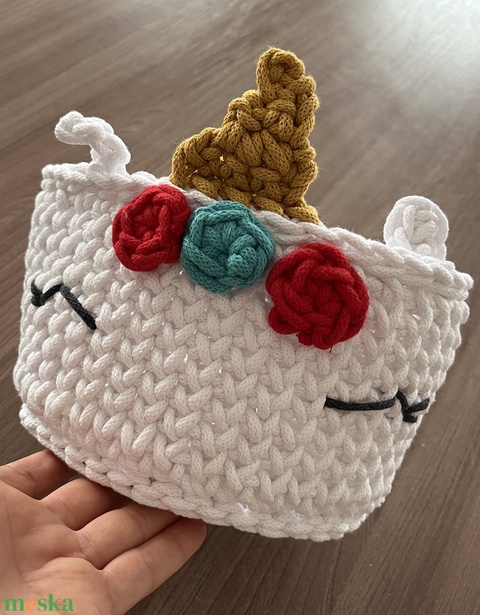 Horgolt unikornis kosár