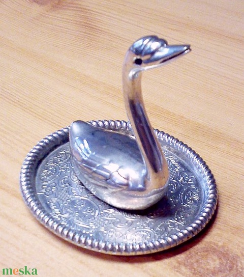 Art Deco gyűrűtartó. Ezüstözött hattyú szoborral