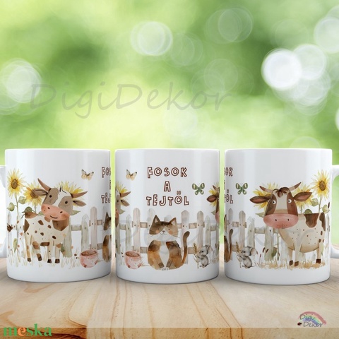 Farmos hangulatú bögre Fosok a tejtől felirattal. Ajándék laktózérzékenyeknek, tejallergiásoknak.