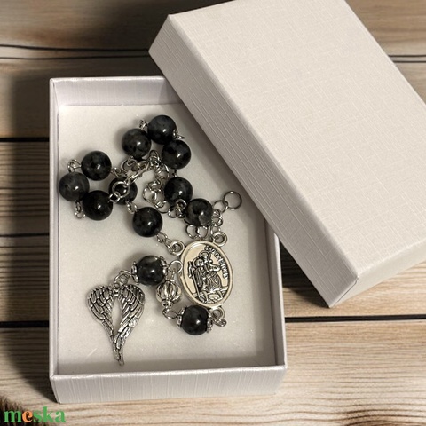 Szent Kristóf védelmező Angyalszárnyas Autós rózsafüzér labradorit ásványokból ajándékdobozzal