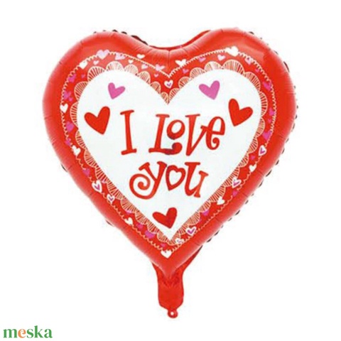 I Love You feliratos - Szív formájú piros kerettel - Fólia Lufi - 45cm - Léggömb - Szerelmes Lufi - Szerelmes Ajándék (F