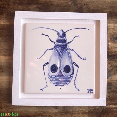 Kézzel festett mázazott portugál csempekép Bodobács, keretben