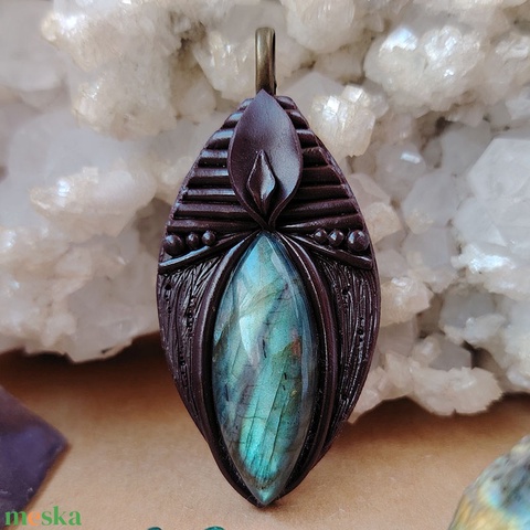 - Anyaga: süthető gyurma, labradorit, fém medálakasztó