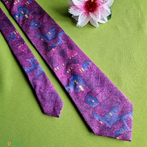 ESKÜVŐ NYK108 - Selyem nyakkendő - lila alpon kék ház minta