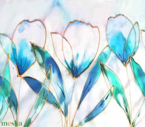 Kézzel festett, művészi és hordható sálak tiszta selyemből. Időtálló érték, természetesen.