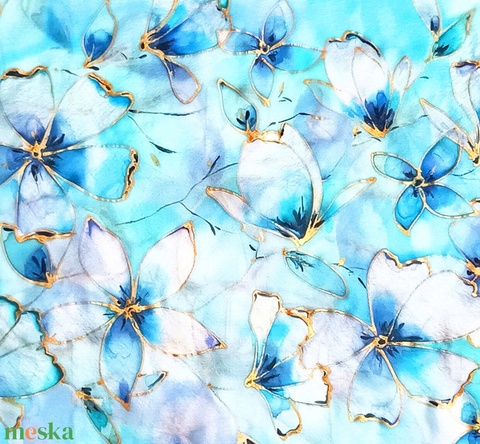 Kézzel festett, művészi és hordható sálak tiszta selyemből. Időtálló érték, természetesen.