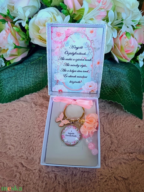 Ajándék pedagógusnak, osztályfőnöknek egyedi kulcstartó pillangós