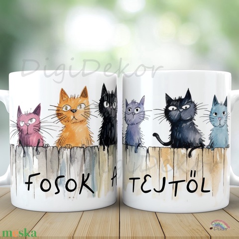 Macskás Fosok a tejtől bögre. Vicces ajándék laktózérzékenyeknek.