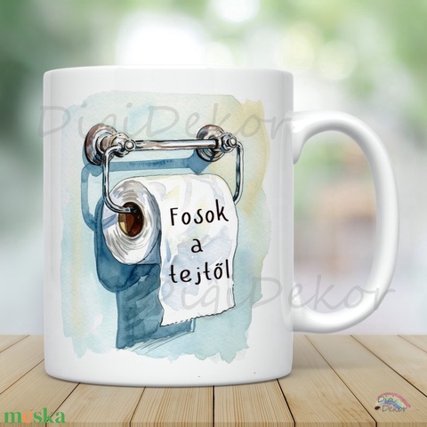 WC-papír mintás Fosok a tejtől bögre. Vicces ajándék tejérzékenyeknek.