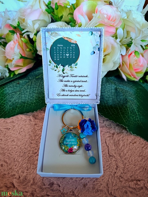 Ajándék pedagógusnak, tanító néni egyedi kulcstartó kék