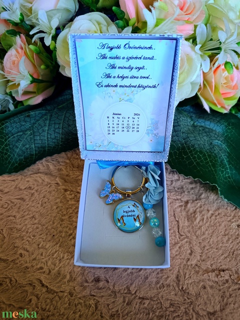 Ajándék pedagógusnak, óvónéni egyedi kulcstartó pillangós
