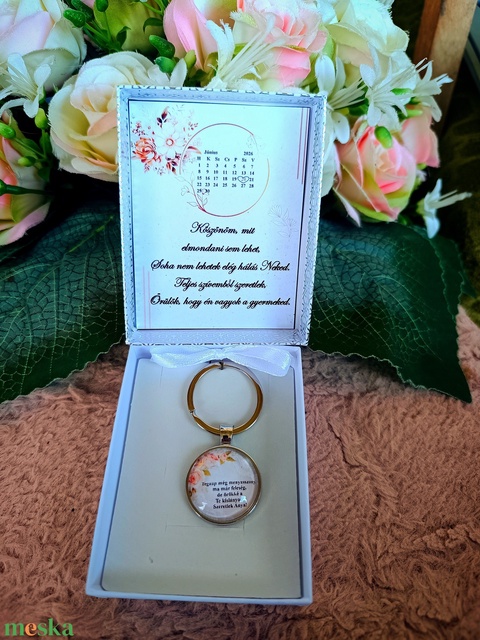 Ajándék örömanyának esküvői szülőköszöntő kulcstartó
