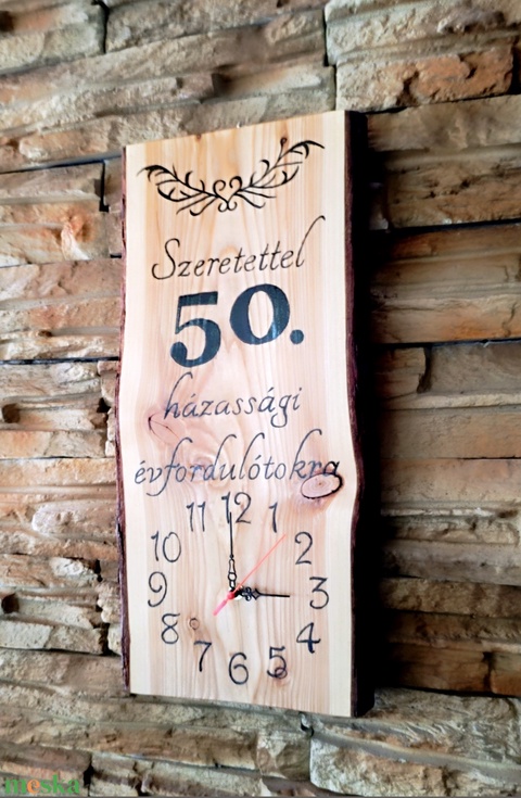 Egyedi, fából készült falióra 50.házassági évforduló alkalmából