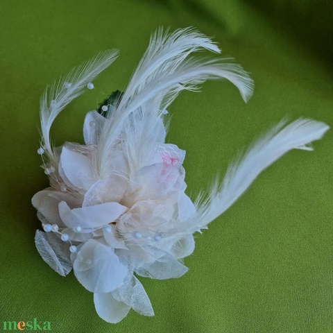 ESKÜVŐ HAD225 - Kitűző, hajdísz - 80mm-es fehér tollas virág