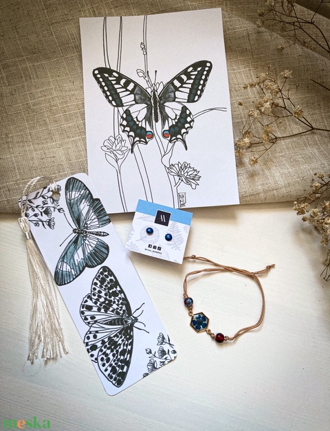 Pillangós szett - Zsinórkarkötő, fülbevaló, könyvjelző