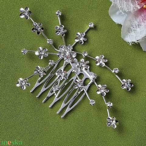 ESKÜVŐ HAD222 - Kristályköves, virágos ágacskás strasszköves hajfésű, hajdísz