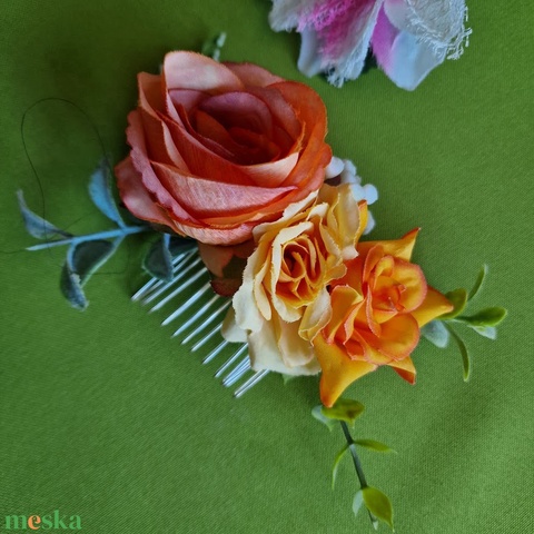 ESKÜVŐ HAD223 - Selyem rózsás hajfésű, hajtű