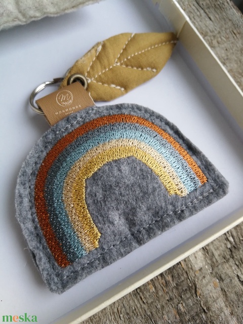 Hímzett szivárvány dekorációs kiegészítő, kulcstartó