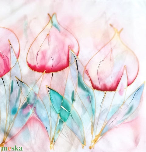 Kézzel festett, művészi és hordható sálak tiszta selyemből. Időtálló érték, természetesen.