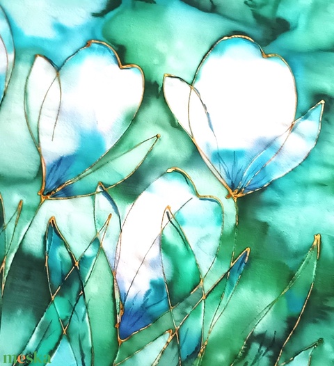 Kézzel festett, művészi és hordható sálak tiszta selyemből. Időtálló érték, természetesen.