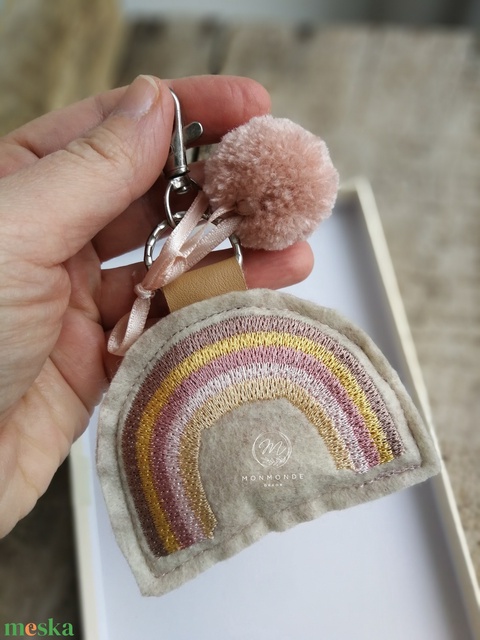 Hímzett szivárvány dekorációs kiegészítő, kulcstartó