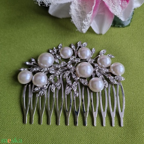 ESKÜVŐ HAD234 - Menyasszonyi strasszköves gyöngyös hajfésű, hajdísz