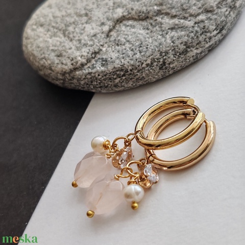 Szívem... rózsakvarc - tenyésztett gyöngy fülbevaló