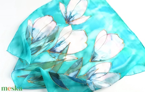 Kézzel festett, művészi és hordható sálak tiszta selyemből. Időtálló érték, természetesen.