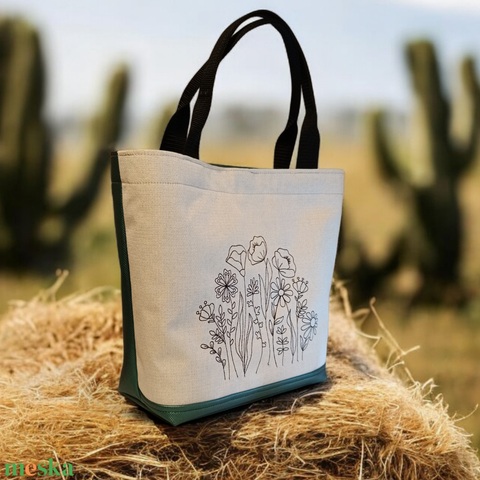 Vadvirágos hímzett zöld válltáska