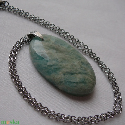 Orvosi acél szerelékre akasztottam ezt a különlegesen szép akvamarin medált.