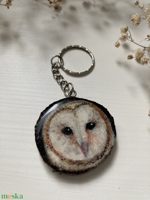 Baglyos kulcstató - Kézzelfestett