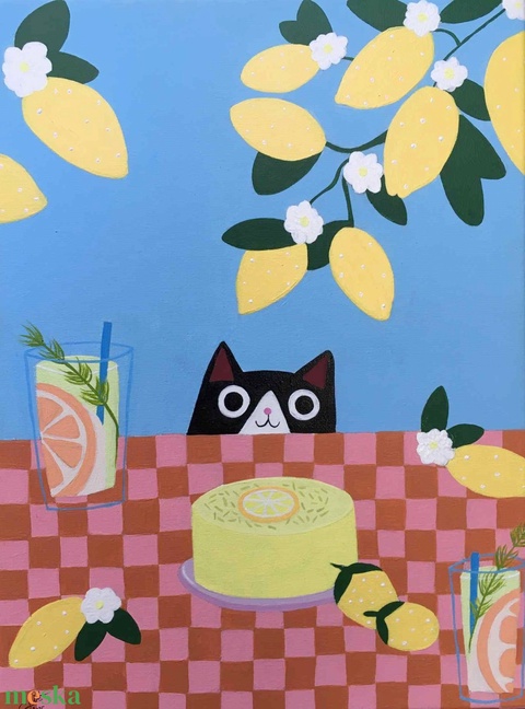 Citromos meglepetés c. Modern cicás festmény