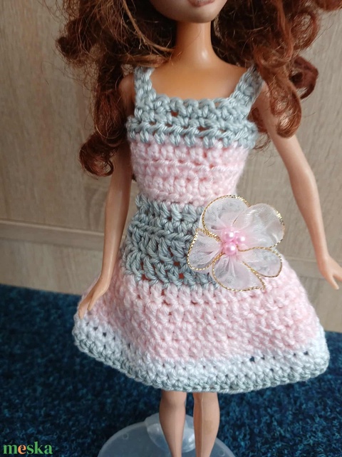 Horgolt szürke-rózsaszín Barbie ruha. Egyedi.