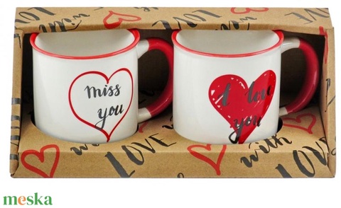 Bögre szett szíves 2db 3dl 2 féle felirattal i love you (Valentin napi ajándékok)