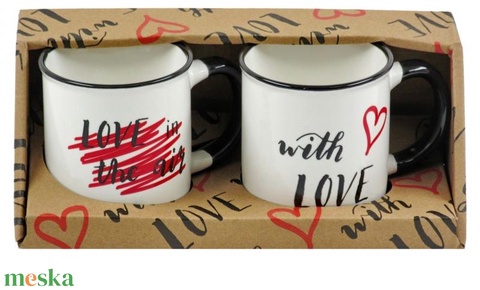 Bögre szett szíves 2db 3dl 2 felirattal with love (Valentin napi ajándékok)