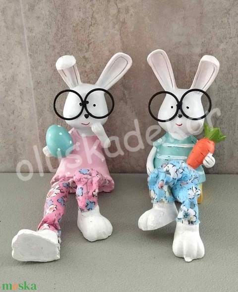 Nyuszi, nyúl, húsvéti, tavaszi dekorációs alapanyag, figura, kerámia és textil, 18cm