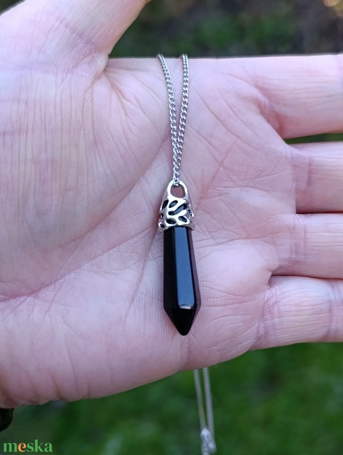 Védelmező fekete obszidián csúcsmedál nyaklánc