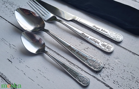 Gravírozott evőeszköz készlet Anyának – szülőköszöntő ajándék bársony ajándéktasakban, egyedi üzenettel