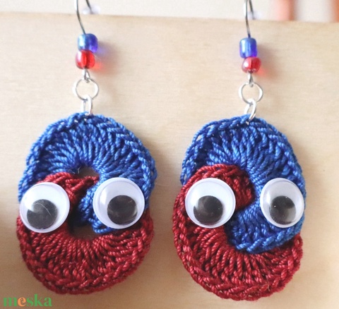 horgolócérna, gyöngyök, mozgó szemek, fém
