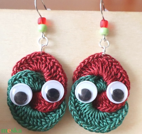 - Anyaga: horgolócérna, mozgó szemek, gyöngyök, fém
