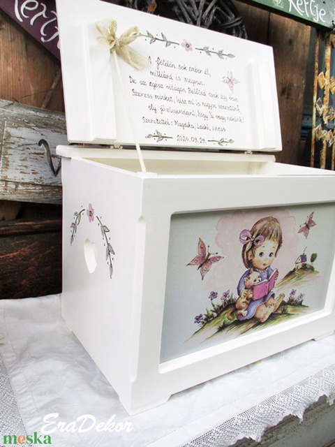 gyerekszoba bútorok, romantikus antikolt festéssel készült fa ajándéktárgyak a provence-i stílus jegyében