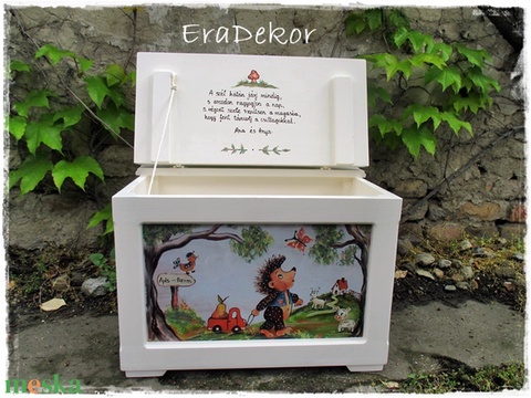 Sünis játéktároló láda kisfiúk keresztelőjére