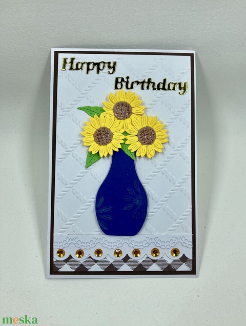 Napraforgók vázában születésnapi képeslap, ajándékkísérő, virágok