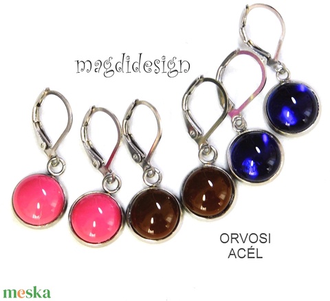 NEMESACÉL! Mályvás-málna, barna, királykék üvegékszer lógós fülbevaló 3 pár
