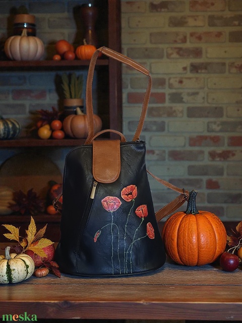 Műbőr hátitáska, kézzel festett, egyedi mintával