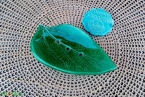 Levél alakú és mintájú kerámia szappantartó, zöld
